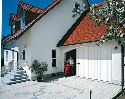 Of het nu gaat om een geprefabriceerd huis, een designer-villa op het platteland of een rijtjeshuis in een grote stad - deze variant van de Normstahl-zijdelingse sectionaaldeuren past uitstekend bij bijna alle architectuurstijlen.