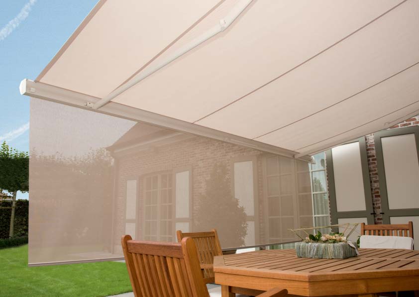 Uniek aan de B-38 is het feit dat de volant volledig verdwijnt in de voorlijst waardoor het scherm een zeer mooie en elegante look krijgt. De B-38 is verkrijgbaar tot een breedte van 6m met een maximale uitval van 3m50.