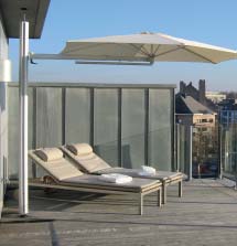 De telescopische arm Prostor P3 is de ideale partner voor de horeca toepasingen. de P3 is vergrendelbaar in twee posities. De arm wordt gebruikt in de horizontale positie en in de verticale positie zijn zowel de arm als parasol netjes opgevouwen.