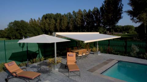 De TWINSTOR in combinatie met de PROSTOR P6 verruimt het schaduw - oppervlak van elk terras aanzienlijk.
